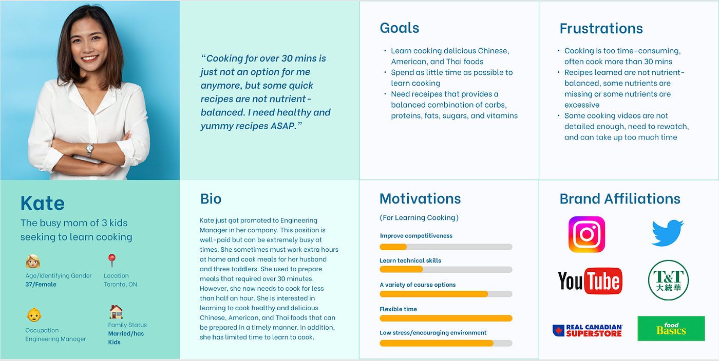 Kate is a 37-year-old mother of three who represents the demographic of parents who want to enhance their domestic skills. She may be interested in courses on our platform that can help her improve her cooking, cleaning, or parenting skills. As a busy parent, Kate may prefer flexible courses that allow her to learn at her own pace. She may also value affordable courses that can be completed in a short amount of time.