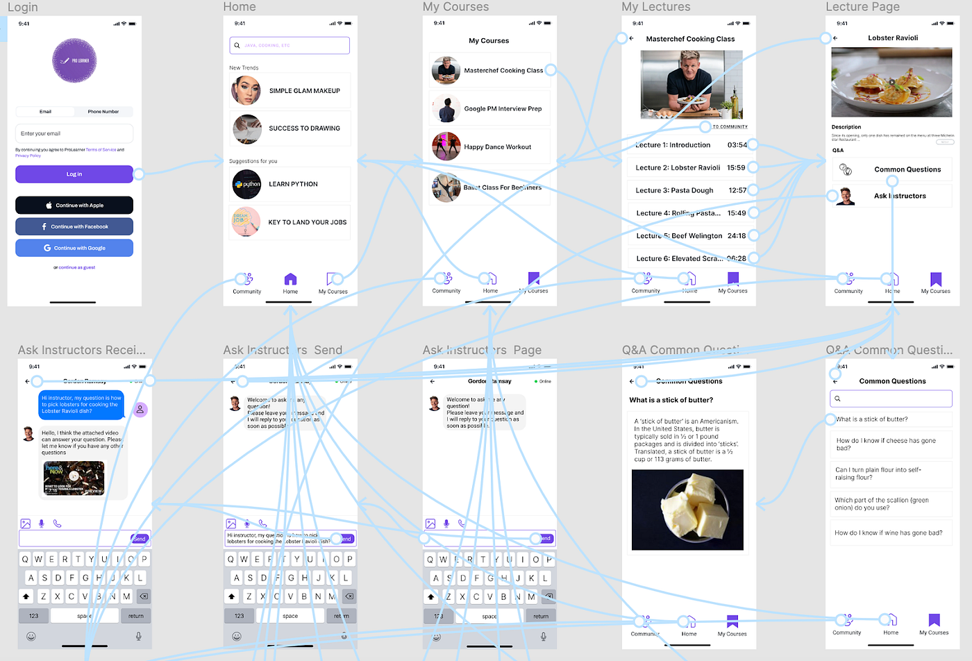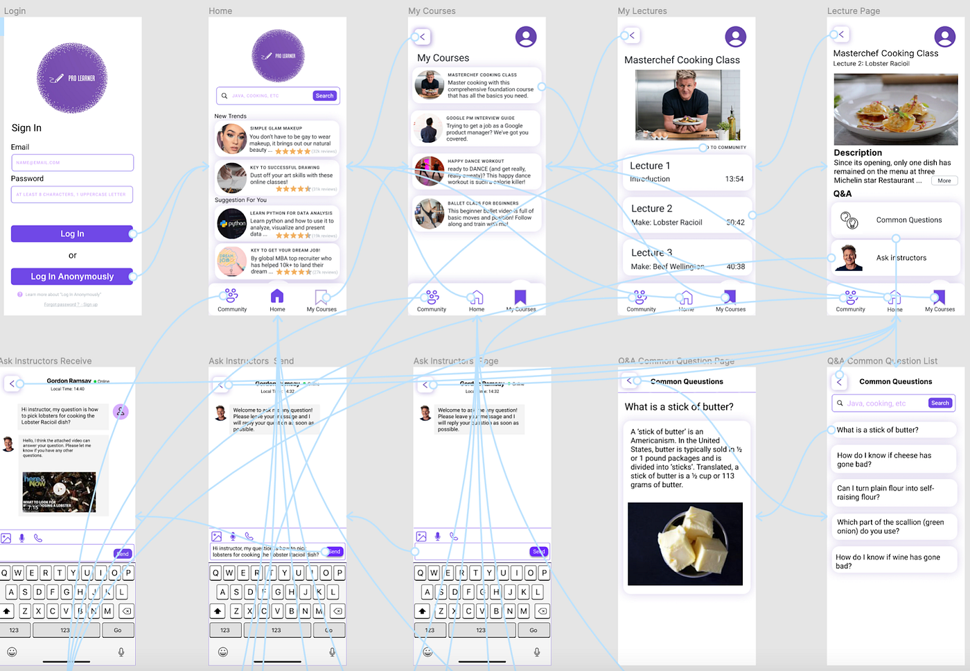 Our team began by looking into existing research on the topic of our platform. An article titled “Side Effects of Online: pros and cons in the development of informal online learning’’ helped guide our product design process by outlining high-level problems related to online learning. One critical insight it brought forth was the lack of connection between students while taking online courses which had a negative impact on both their mental health and academic performance. This inspired our team to include a community feature in proLearner that would overcome the major drawback of online learning.